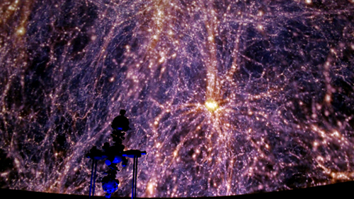 Für diese Veranstaltung wurden eigens 360-Grad-Filmaufnahmen mit Spezialkameras in Forschungseinrichtungen, wie dem großen Teilchenbeschleuniger CERN bei Genf und dem unterirdischen Labor im italienischen Gran Sasso Gebirgsmassiv gemacht.