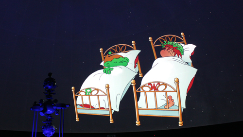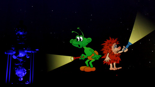Der zweite Teil wird individuell nach dem Alter der anwesenden Kinder gestaltet. Wir starten gemeinsam mit Astronauten zur Internationalen Raumstation und sehen, wie die Raumfahrer im Weltall leben und arbeiten.